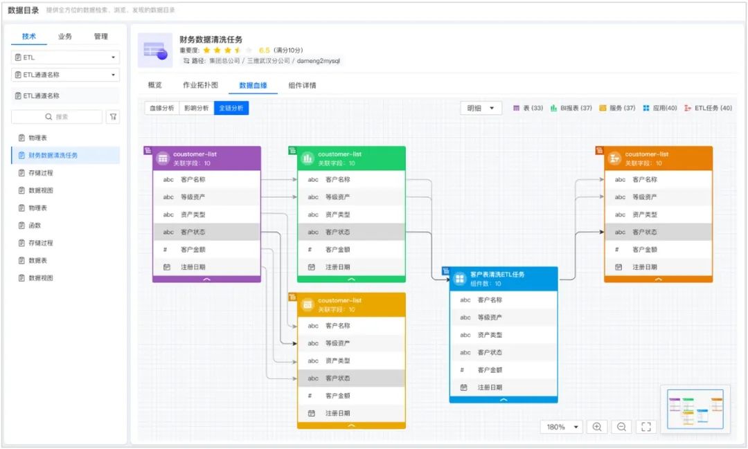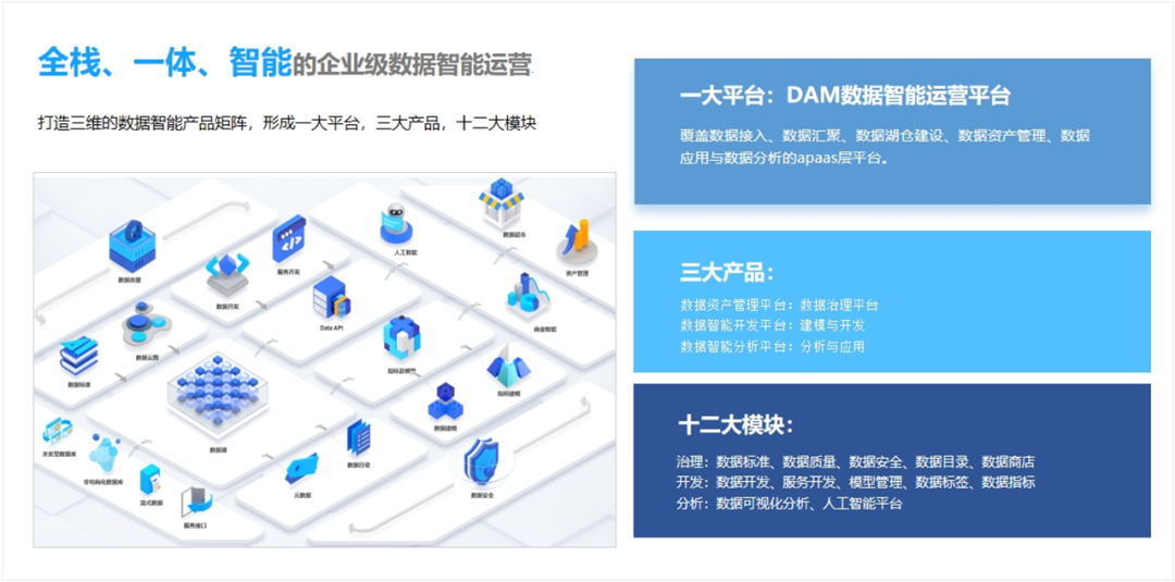 2023年10月26日,2023三維天地數據資產高峰論壇在北京成功舉辦。期間全新一代的數據資產管理平臺(DAM)v13正式與廣大用戶見面。 全新版DAM V13是基于客戶需求變化而進行的一次功能迭代。平臺吸收了100+項目實施過程中用戶提出的重要需求,進行統一歸納分析提煉,作為階段性需求進行新功能開發,新版本將更貼合項目實際使用場景,在工具化,自動化、智能化的方向走出堅實的一步,以更好地表達三維天地的產品對于企業數字化轉型的支撐價值。 產品新增了數據指標、數據建模、數據標簽、人工智能四大模塊,強化數據治理、提升用戶洞察力,加速數據價值快速轉化的工具支撐;持續以主動元數據為核心,結合機器學習、深度學習、自然語言處理技術,對多模塊功能細節進行匠心打磨,完善功能閉環,功能點迭代數量80+,充分提升了智能化水平與數據管理效率。 在上一版本的基礎上,DAM V13平臺底座更夯實、數據治理更高效、數據開發更便捷、數據運營更智能,且擁有更標準及更為閉環的數據治理與智能數據分析解決方案。平臺具備搜索問答式數據分析系統,問答式交互,搜索式體驗,將變革數據分析流程全場景的數據整合,讓數據“慧”說話;全鏈路協同的數據開發讓工具回歸為人服務的本質,全方位地提升一線數據開發人員/業務人員的工作效率。 DAM數據資產管理平臺是全棧、一體、智能的企業級數據智能運營平臺,形成了一大平臺、三大產品、十二大模塊的完整產品矩陣。主要包括治理、開發、分析三大產品,涵蓋數據目錄、數據標準、數據質量、數據安全、數據開發、主數據建模、數據建模、指標建模、標簽建模、AI人工智能、BI商業智能、數據超市能等12大模塊,支持從數據治理到數據開發到數據分析的全鏈路的數據資產管理能力。 特性一:增強式數據目錄 傳統的數據資產目錄主要集中在結構化數據庫表管理。而三維天地的數據目錄在此基礎上擴展了BI看板、ETL作業、主數據模型等類型,可以展示更多樣的數據對象,更細節的血緣關系,更及時的數據特征。 特性二:數據質量的閉環 在以往項目實踐中,客戶不愁發現問題,而是更注重如何將發現的問題得以解決、將有問題的數據整改到位。因此平臺支持數據質量的事前、事中、事后的閉環管理,即事前需求和規則定義、事中質量監控以及事后量化分析和問題追溯。 特性三:治理到自助式敏捷應用的閉環 平臺具備從數據治理到自助式敏捷應用的閉環一體化管理。在資產平臺中,數據治理結束后,平臺具備商業智能、人工智能、指標管理、標簽畫像以及智能應用等各模塊,以滿足用戶的個性化應用的構建。當已有的應用無法滿足訴求時,業務人員也可通過數據超市自助獲取數據、自助分析數據。實現治理到分析的全流程閉環應用。 特性四:基于知識圖譜的增強數據治理 平臺結合AI、知識圖譜,有效提高了數據治理的效率,如業務域自動分類、數據標準自動生成、數據資產推薦、智能血緣推薦等,智能化的功能貫穿數據資產平臺的方方面面。 特性五:數據資產合理評估及入表 在數據資產入表的大背景下,產品適時推出自研的數據資產評估模型,通過對數據資產的成本因素、場景因素、市場因素和質量因素等方面進行多維分析評估,為數據資產合理定價及市場流通奠定基礎。 特性六:數據開發和治理一體化 企業在以往數據中臺的建設效果不顯著。全新平臺將數據治理的流程與數據開發的全生命周期深度融合,通過數據開發一體化,在數據標準驅動模型構建基礎上,有序高質量地進行數據生產,在數據開發過程中,完成數據治理。實現“標準即設計,設計即開發,開發即治理”的開發治理一體化理念。 特性七:高效、輕量化的指標建模 過去指標的建設,依賴開發人員手工編寫sql,業務人員用BI畫報表,不同人員對于業務指標存在不同的理解,產生的結果各異,既不便于統一管理,更難于進行問題溯源。 特性八:指標管理+BI實現指標中臺體系化 指標結合BI平臺,實現基于指標的可視化展現;兩者相輔相成,指標賦能BI,基于數據表可以直接構建圖表展現和基于指標的展現兩種都兼容的模式,滿足企業更靈活的分析場景。 特性九:敏捷的數據標簽價值化 人員oneid、精準營銷、用戶分群、用戶畫像等應用場景,其實都是基于數據標簽的應用。產品提供了完整的標簽設計、開發、管理、應用的平臺。構建以業務價值為導向的標簽體系與多樣群組應用,支撐商業化分析,驅動業務增長。 結合新一代技術,基于大模型實現智能數據分析,通過提供問答式的交互來降低操作門檻,基于NL2SQL實現數據的可信、可追溯。同時基于三維天地在檢驗檢測數智化領域的多年深耕與思考,訓練了基于LIMS垂直行業的大模型,涵蓋食品檢測、動植物檢測、實驗室檢測、綜合第三方檢測、環境檢測以及醫學監測等各行各業,綜合萬億級的實際項目數據和千余條行業指標,打造出一款基于LIMS領域的ChatBI應用。 此次數據資產管理平臺(DAM)v13的成功發布,是三維天地在數智時代順應趨勢與發展的轉型升級,標志著公司在數據治理能力與企業級服務能力的持續性、創新性突破。作為國內數據治理與數據資產管理領域的知名企業,三維天地將繼續踐行自主技術與數字化產品的研發創新,為企業價值提升和區域數字經濟的發展發揮更為關鍵的作用。