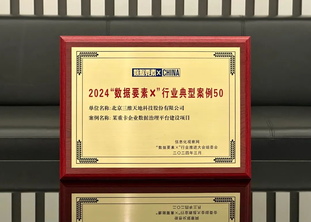 近日,2024 首屆“數據要素×”行業推進大會在北京舉辦。期間,三維天地憑借在數據管理產品應用與創新的綜合優勢,榮登2024“數商TOP50”榜。同時,三維天地實施的某重卡企業數據治理平臺建設項目入選2024“數據要素×”典型案例50佳。