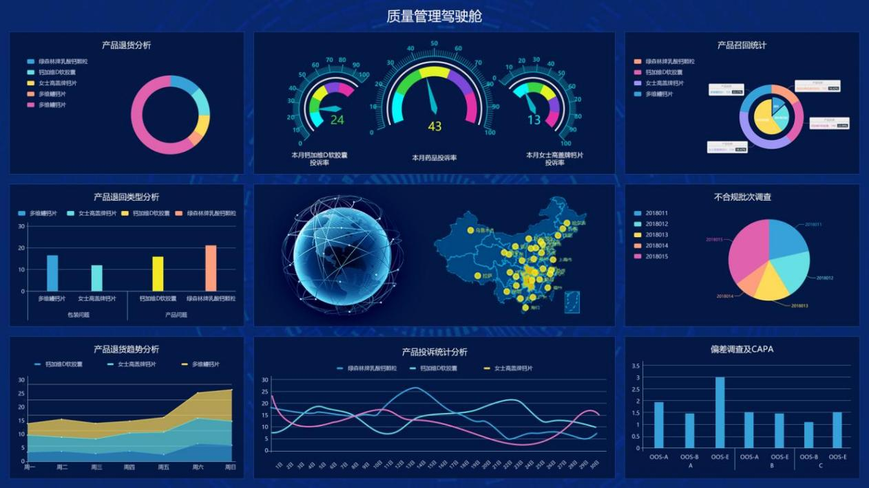 醫藥實驗室通過軟硬件結合與多系統集成應用,實現智能化管理;同時,借助數智化質量管理系統,以數字技術覆蓋質量全鏈條活動數據,實現質量數據的全面收集。在日常質量數據實時上報、多種統計分析、趨勢預測、商業智能(BI)及人工智能(AI)等多種方式下,實現全方位、多維度質量數據智能分析與調度、智能洞察,實現多維度預警與預測等智能化管理,進一步提升產品質量,推動質量技術創新,促進數智技術對藥品質量管控體系的革新與模式升級。