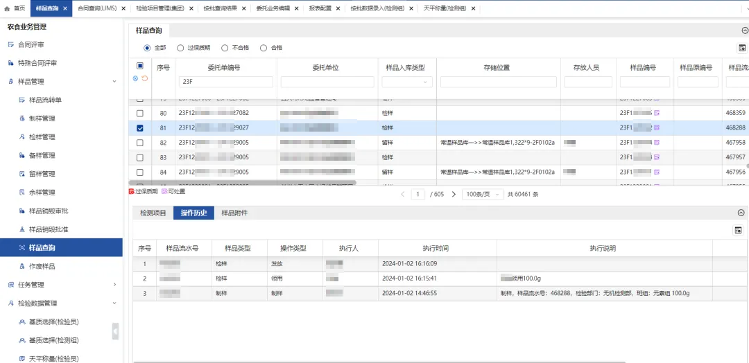 SW-LIMS能實現檢樣、留樣、備樣的入庫。系統能夠跟蹤樣本的來源、位置和狀態,確保樣本不被污染、混淆或丟失,尤其是對于需要長時間追蹤或涉及復雜流程的樣本。SW-LIMS對樣品的發放、領用、歸還、申請處置、銷毀等流程都能有效追溯和查詢,從樣品的入庫到銷毀,所有操作記錄均可跟蹤。