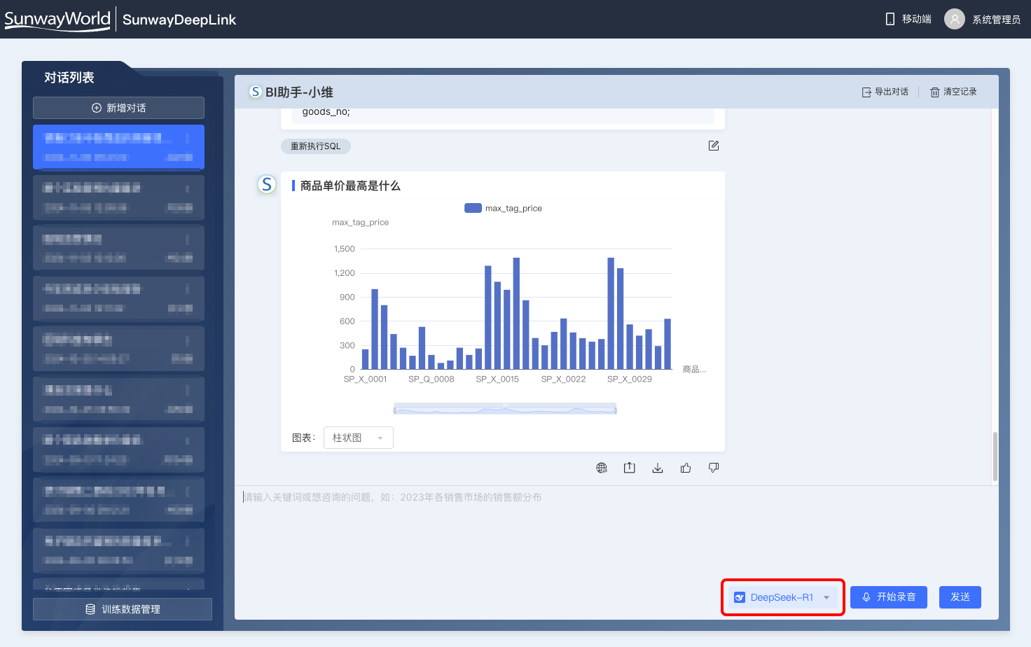 三維天地,作為數(shù)據(jù)資產(chǎn)管理領(lǐng)域的領(lǐng)軍企業(yè),始終致力于為企業(yè)提供更精準(zhǔn)、更先進(jìn)的智能化解決方案。并積極推動(dòng)AI技術(shù)與數(shù)據(jù)資產(chǎn)管理業(yè)務(wù)的融合應(yīng)用,近期推出的全新人工智能體產(chǎn)品——SunwayDeepLink智能體,集ChatBI和ChatDOC兩大功能于一身,與DeepSeek(深度求索)實(shí)現(xiàn)全面深度適配,旨在為企業(yè)構(gòu)建一個(gè)“數(shù)據(jù)-洞察-決策”一體化的管理平臺(tái),為企業(yè)數(shù)據(jù)資產(chǎn)管理進(jìn)一步賦能增效!