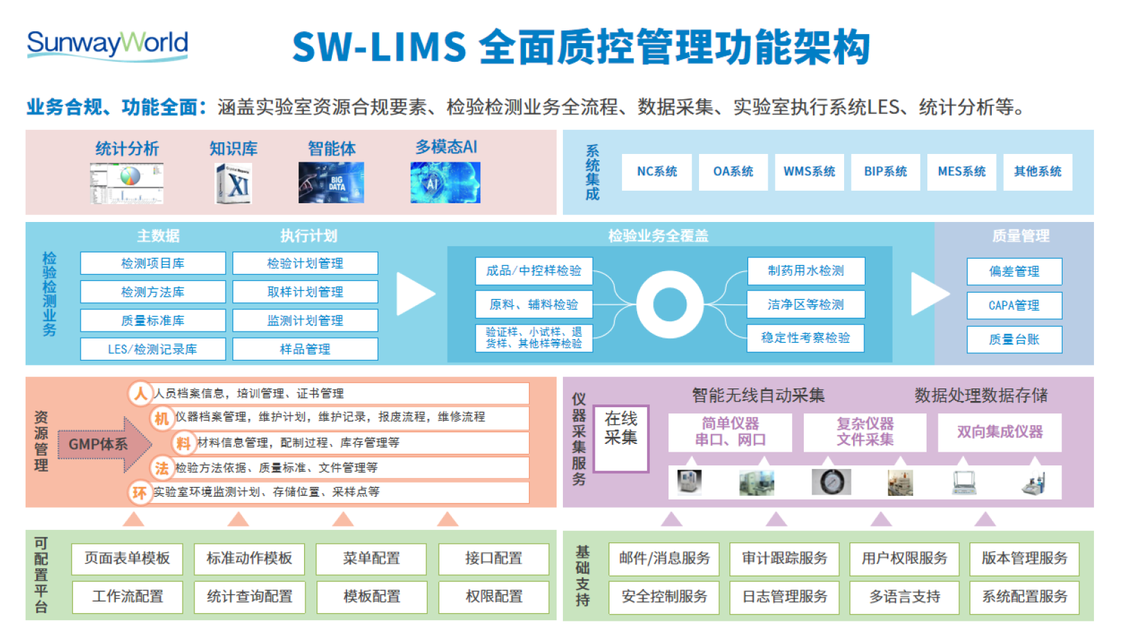 研發一體化平臺包含了:研發產品生命周期管理系統(PLM)、科研項目管理系統(RDMS)、科研過程記錄管理(ELN/LES)、臨床前研究合規系統(GLP)、臨床研究管理系統(GCP)、質控實驗室信息管理系統(LIMS)、科學數據管理系統(SDMS)、質量管理系統、AI應用平臺(SunwayLink)等。以下是主要軟件功能簡介: