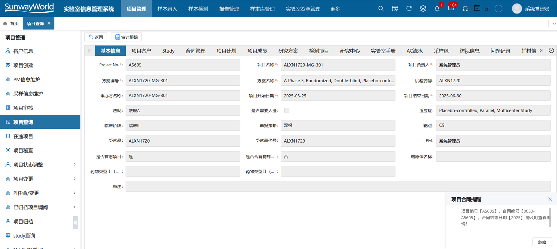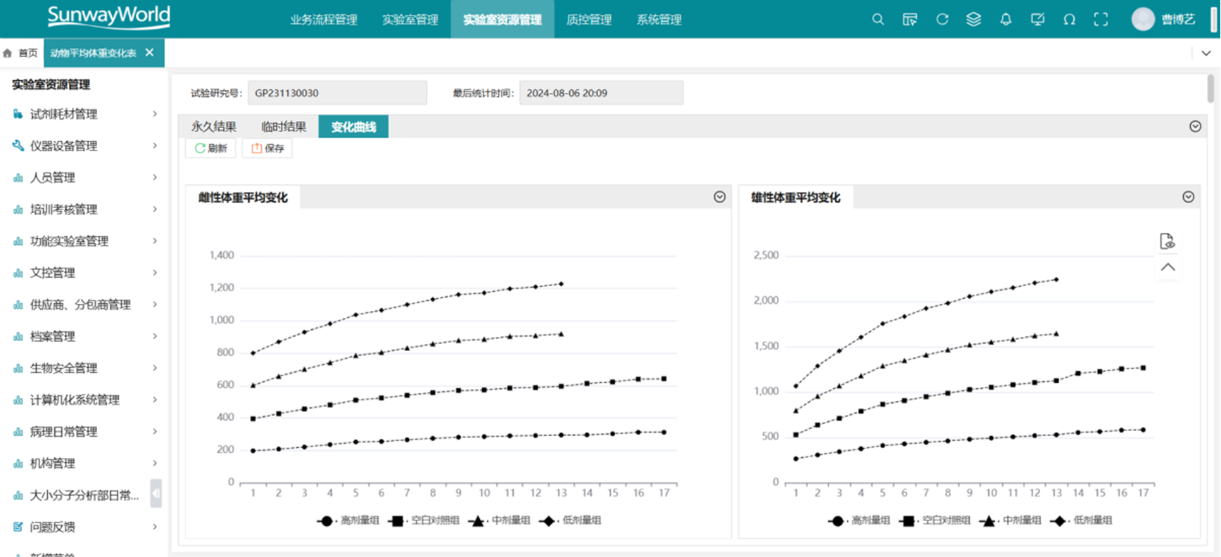 GLP系統聚焦毒理學、藥代動力學、藥效學等臨床前研究流程的管理,支持試驗設計、動物分組、劑量設置、給藥記錄、稱重觀察等全過程數據采集。系統可自動采集動物體重、攝食、給水等信息,支持項目分層管理與權限控制。動物信息、籠位記錄、用藥批次可追溯到單體,滿足GLP實驗數據可追溯、可驗證的核心要求。與SDMS和ELN集成后,實現數據的集中管理、報告生成與GLP合規審計的閉環,提高藥物臨床前研究的科學性與合規能力。