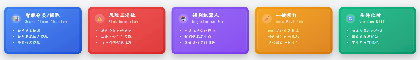 1. AIGC驅動的智能合同生成: 突破當前“審查為主” 的模式 ,系統將能夠根據談判結果、業務場景和監管要求 ,主動生成結構完整、條款嚴謹、符合特定行業及地域法規的初版合同草案。這不僅將審查環節前置化 ,更能大幅提升合同創建的效率與規范性 ,成為業務人員的“智能法律助手”。
