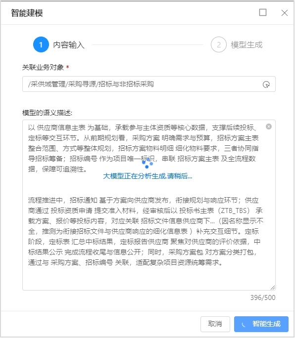 數(shù)據(jù)建模智能體核心邏輯在于“語義理解 + 自動化生成”,NLP 技術能深度解析業(yè)務需求的自然語言描述(如 “以供應商信息為基礎構建招投標的業(yè)務模型”),提取關鍵實體(招標方案、項目方、供應商)、屬性(投標類型、投標價、時間)與關系(招標項目——供應商的歸屬關系);