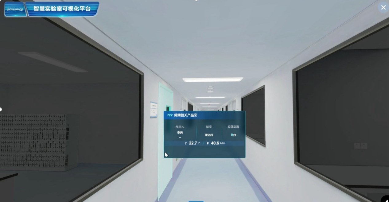- 孿生實(shí)驗(yàn)室交互管理:對(duì)實(shí)驗(yàn)室物理環(huán)境進(jìn)行虛擬仿真,突破信息孤島,將分散的各獨(dú)立管理系統(tǒng)(監(jiān)控軟件、門(mén)禁控制臺(tái)、設(shè)備管理平臺(tái)等)無(wú)縫集成于統(tǒng)一的3D虛擬環(huán)境。管理者可通過(guò)數(shù)字分身進(jìn)行第一視角漫游,在虛擬實(shí)驗(yàn)室中自由行走、觀察細(xì)節(jié)、執(zhí)行交互指令,大幅提升管理效率與操作體驗(yàn)。