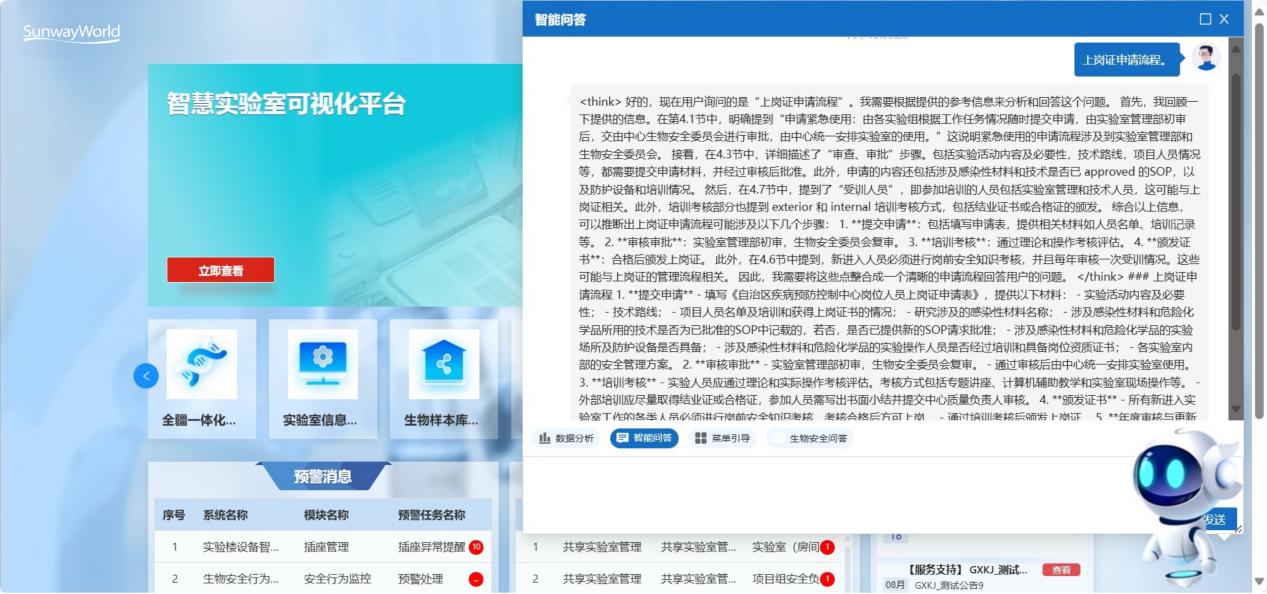 - 交互范式革新,操作化繁為簡(jiǎn):SunwayLink AI應(yīng)用開(kāi)發(fā)平臺(tái)深度融入省統(tǒng)籌業(yè)務(wù)協(xié)同平臺(tái),創(chuàng)新引入智能對(duì)話導(dǎo)航功能。用戶只需“動(dòng)動(dòng)口”,即可快速定位繁雜的業(yè)務(wù)菜單,極大簡(jiǎn)化操作指引,重新定義實(shí)驗(yàn)室業(yè)務(wù)系統(tǒng)的便捷交互新體驗(yàn)。